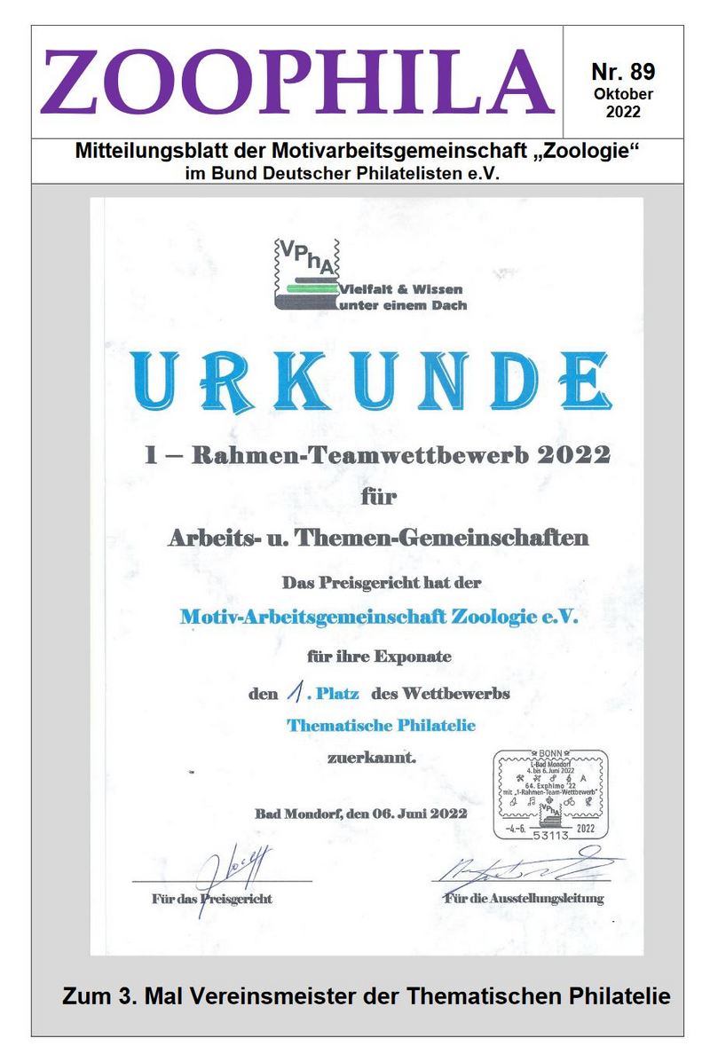 Inhaltsübersichten der einzelnen "Zoophila" können Sie unter dem einzelnen Heft einsehen.